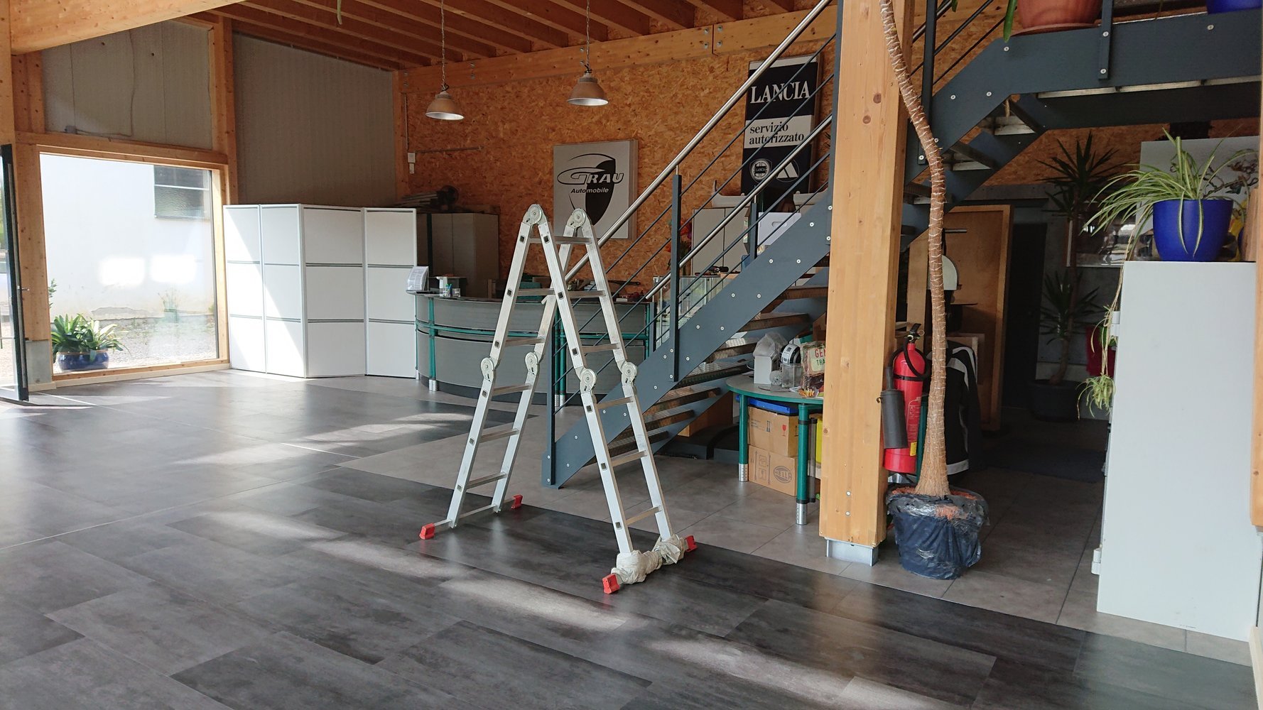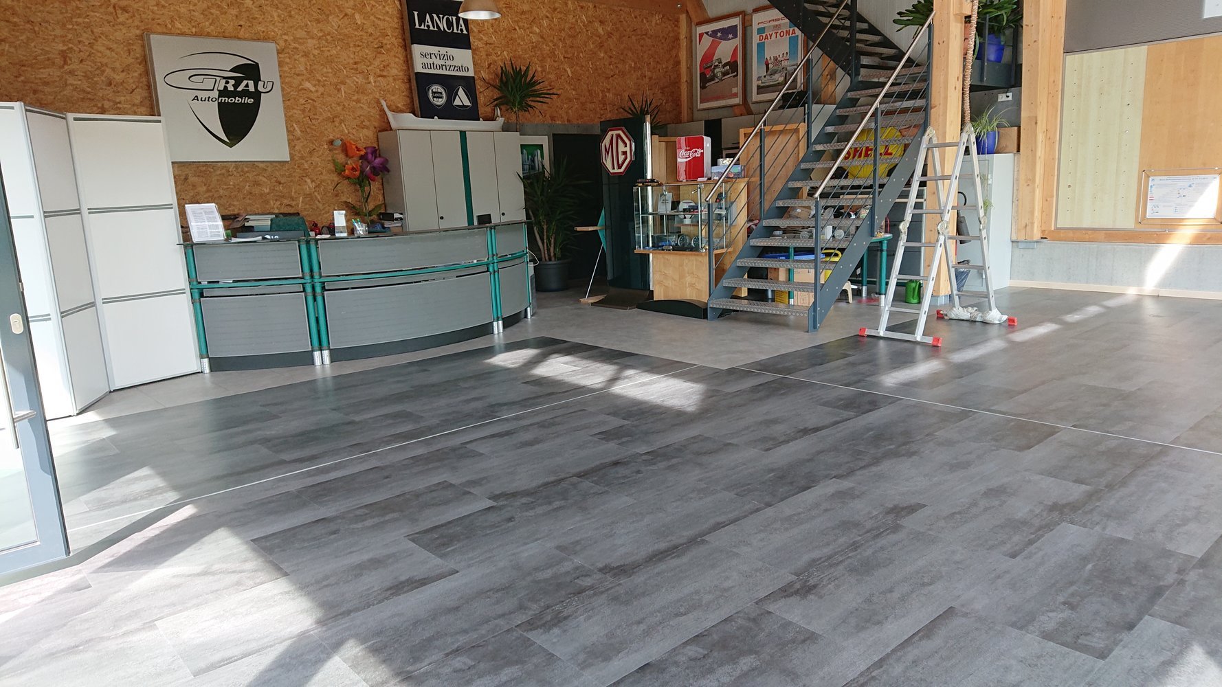 So langsam nähern wir uns dem Endspurt. Unser Ausstellungsraum bekam einen neuen Boden und die Außenfassade 2 neue Schilder (Bild 41 - 49).
