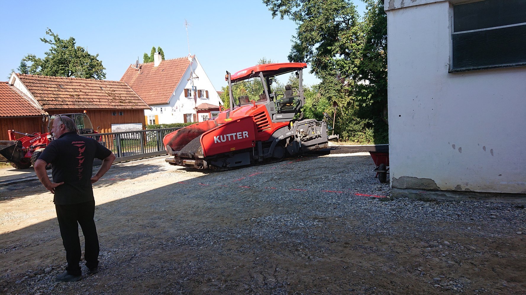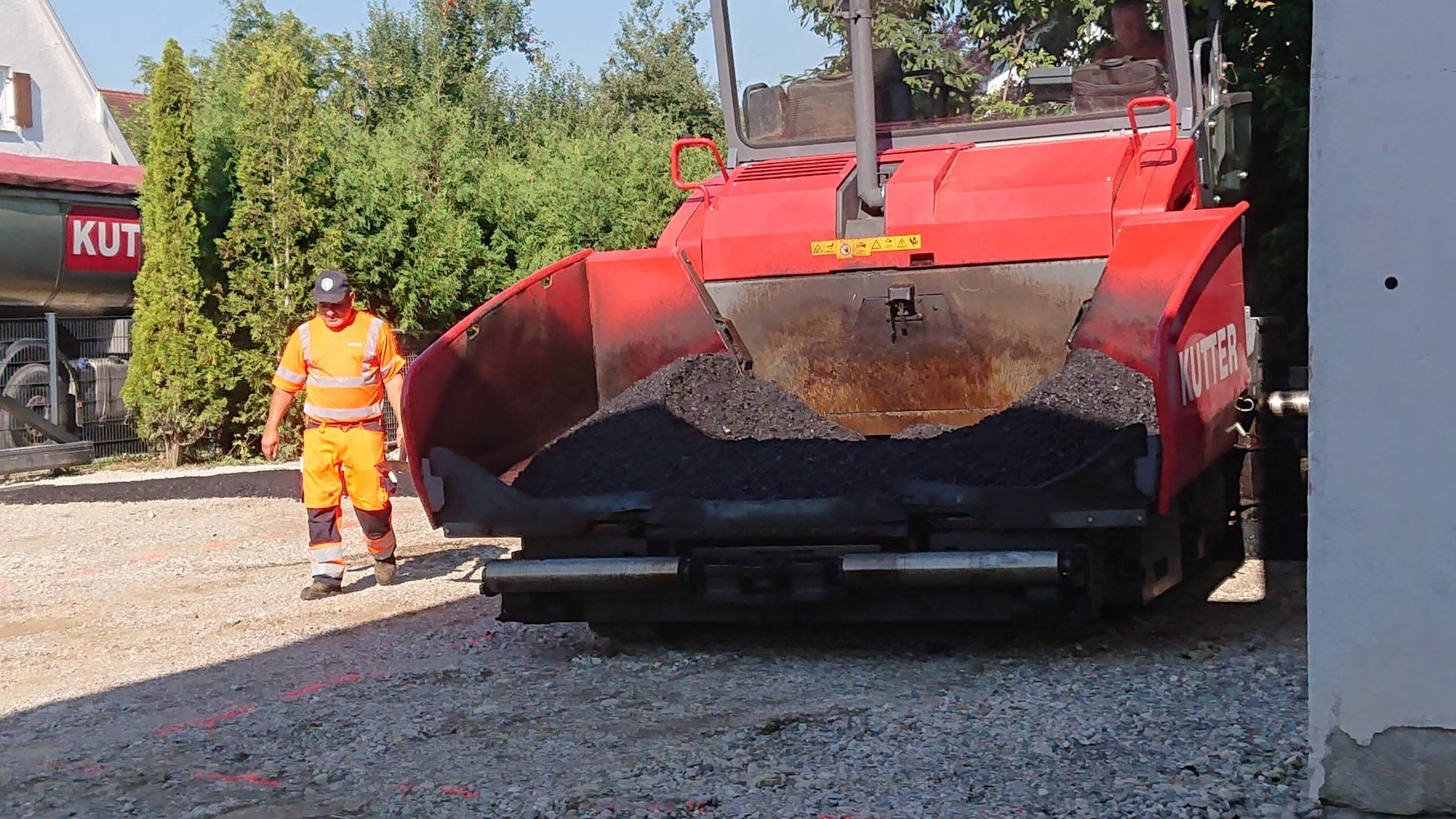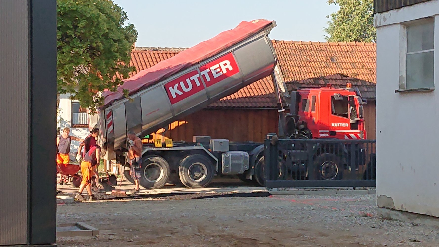 Montagmorgen, 25.07.2022, um 7.00 Uhr, ging es mit den Asphaltierarbeiten los (Bild 73 - 95). Jetzt ist unser Hof fertig geteert.