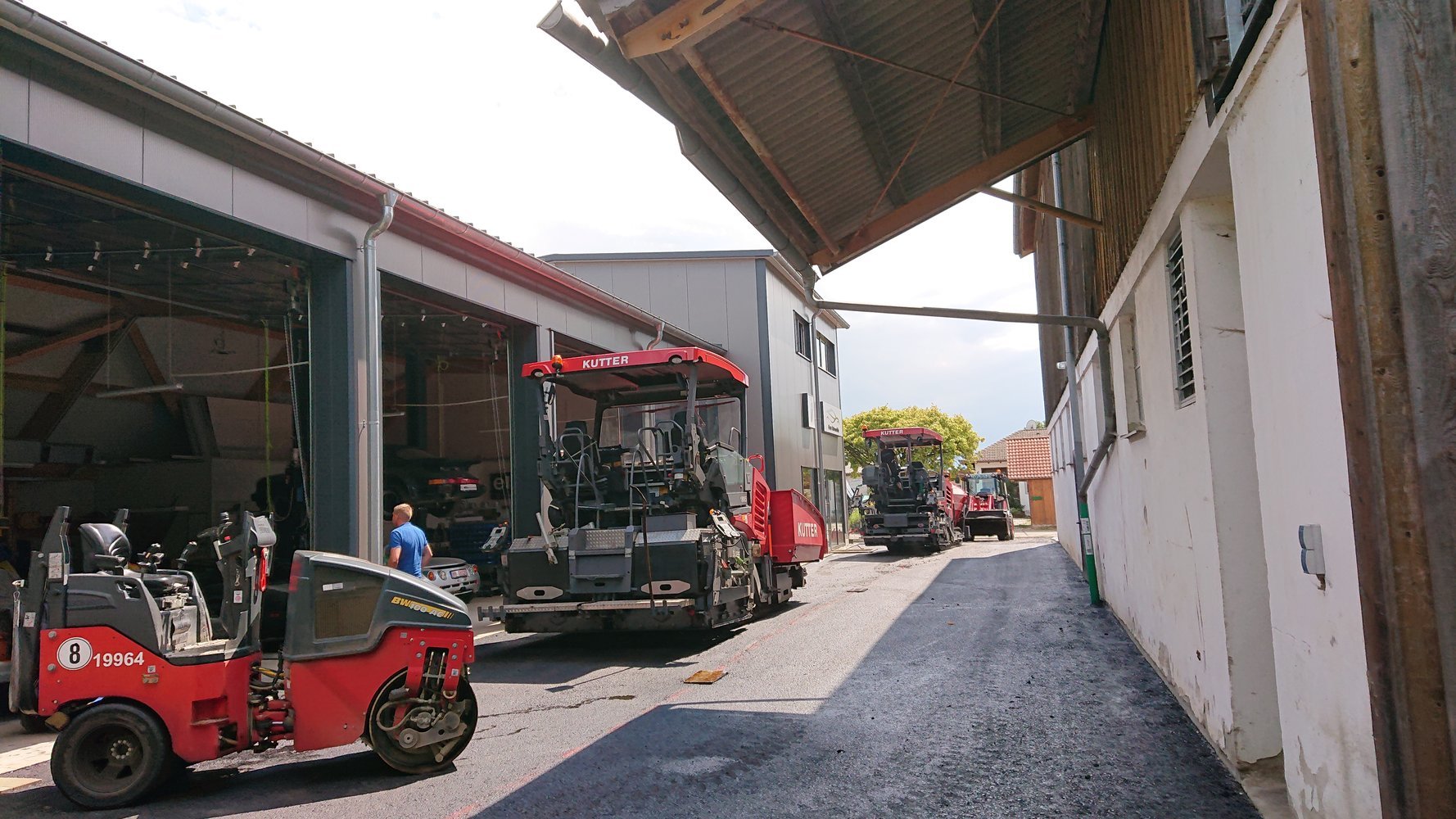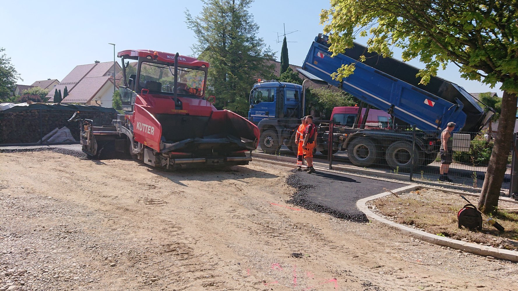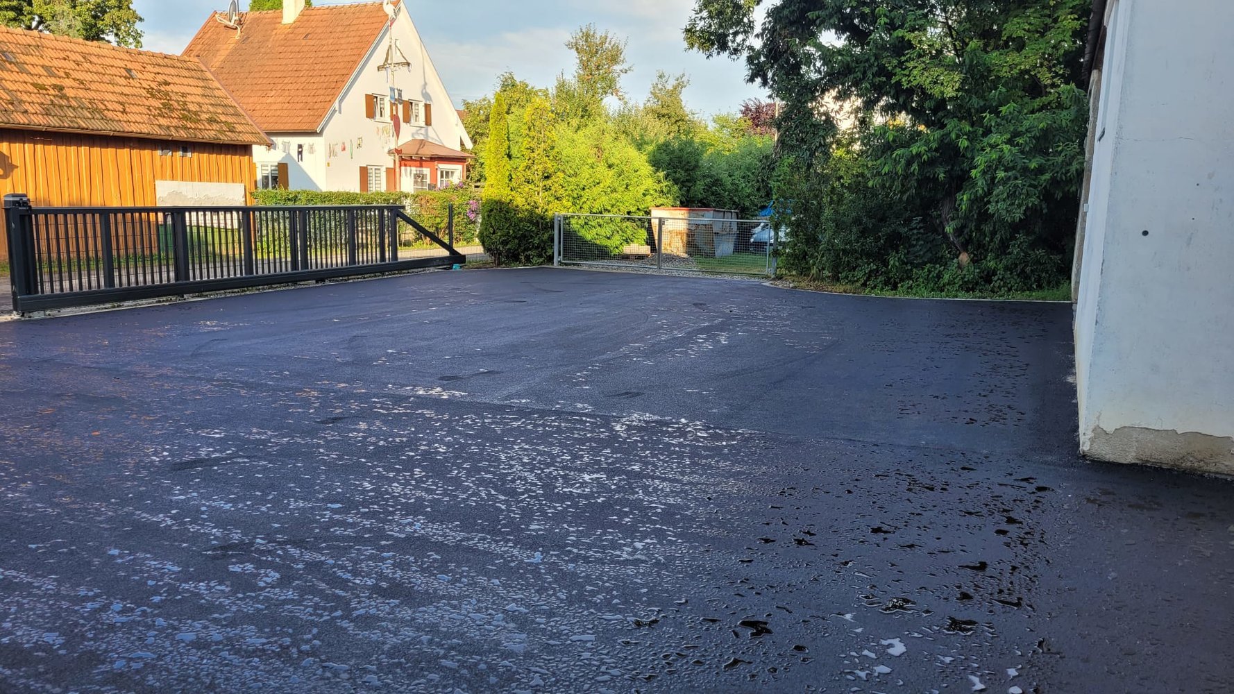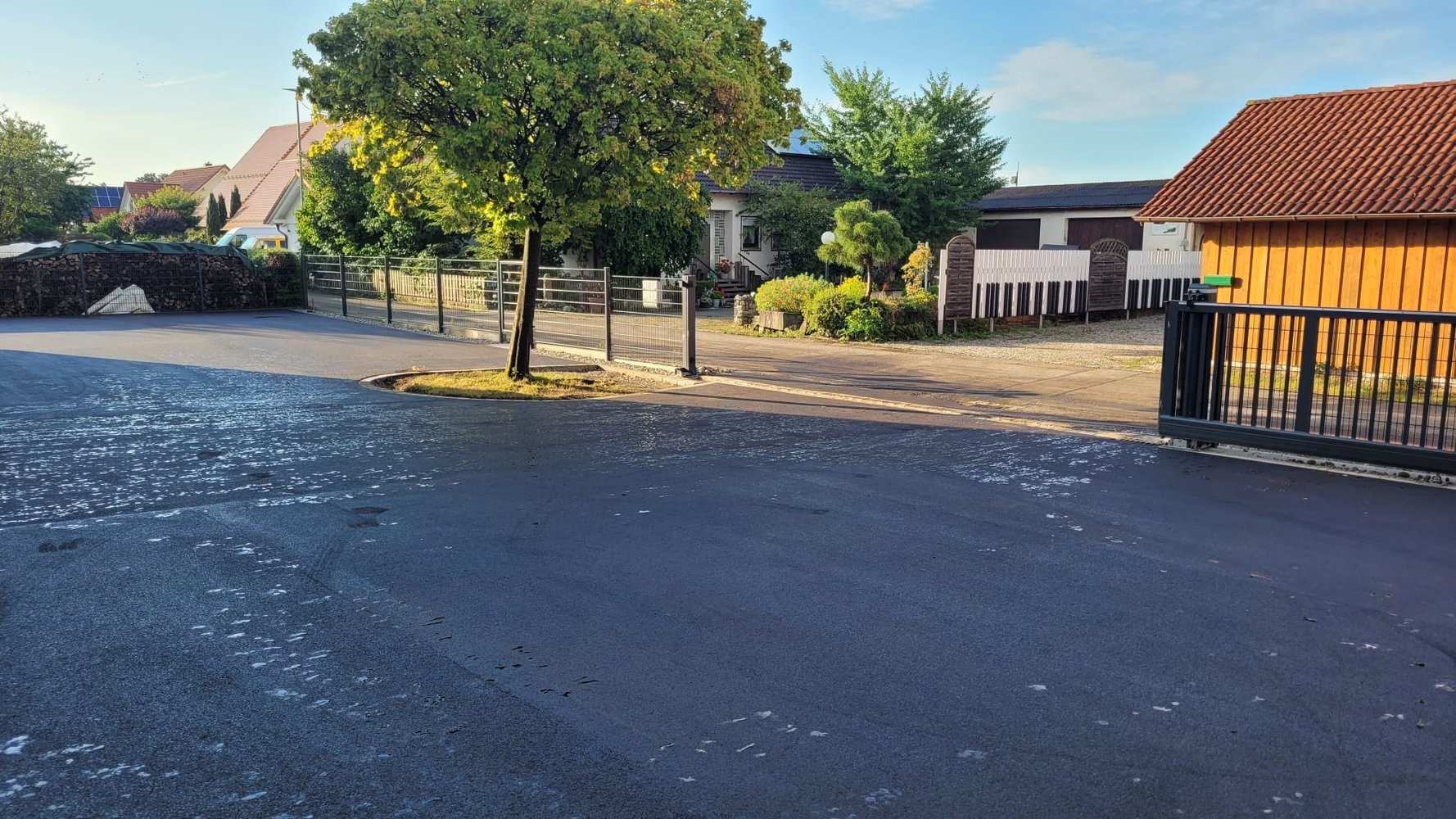 Montagmorgen, 25.07.2022, um 7.00 Uhr, ging es mit den Asphaltierarbeiten los (Bild 73 - 95). Jetzt ist unser Hof fertig geteert.