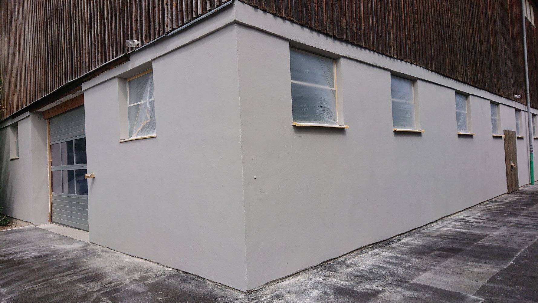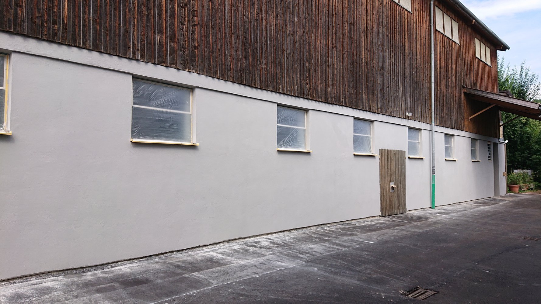 Unser Nebengebäude bekommt einen neuen Anstrich. Nach den Ausbesserungsarbeiten und der Grundierung sieht es schon gleich viel besser aus. (Bild 96 - 98).