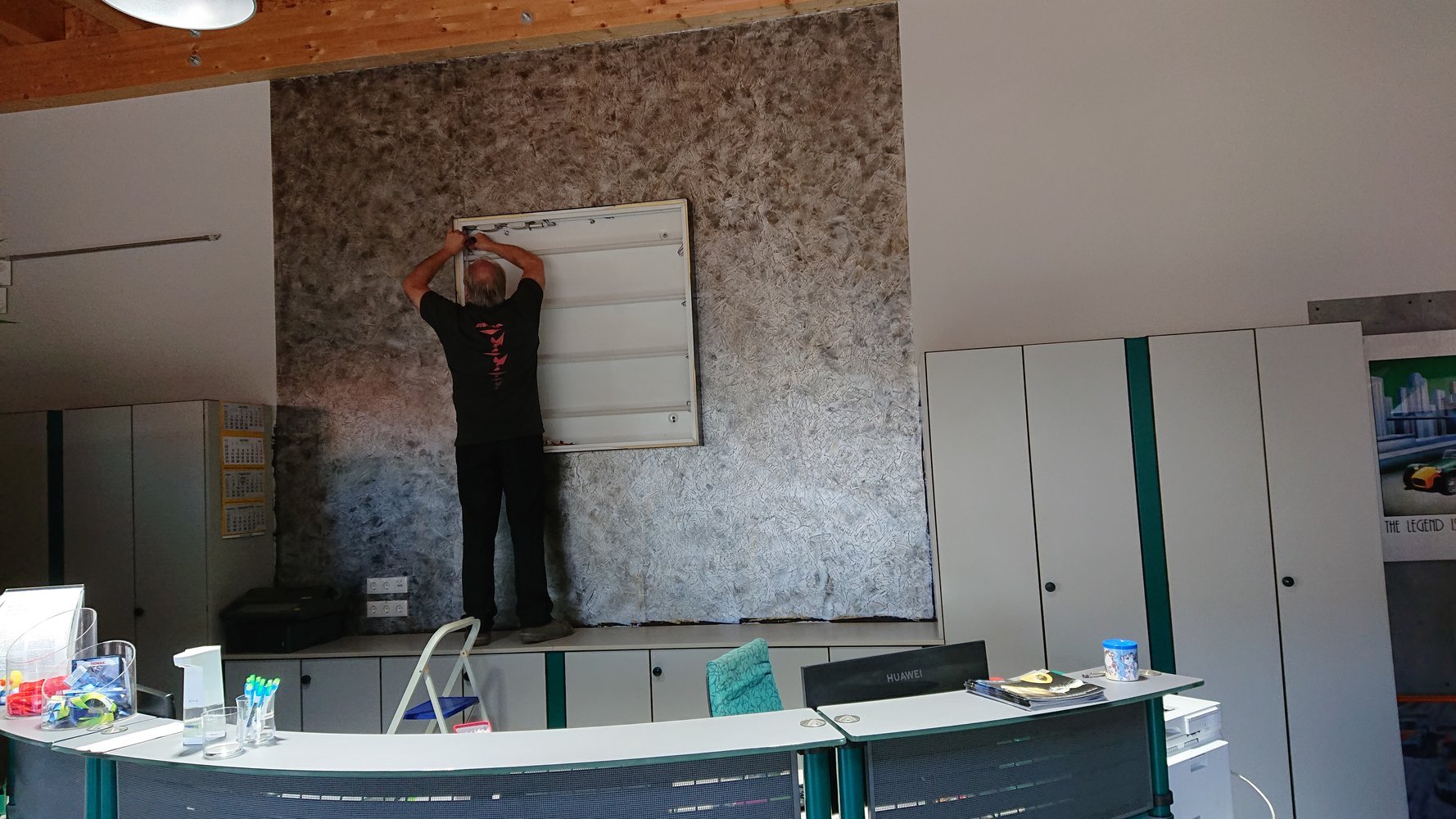 Auch die Malerarbeiten am Empfang sind abgeschlossen (Bild 100 - 102) und viele Bilder sind zwischenzeitlich aufgehängt worden.